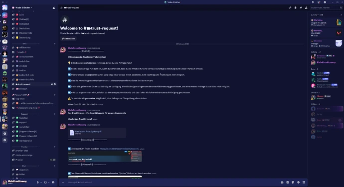 Mitglieder, die sich vorbildlich verhalten und im Twitch-Chat aktiv sind, können sich für das System bewerben und erhalten Trust Level 1 – damit sind sie automatisch für alle Community-Events und Projekte freigeschaltet. Besonders engagierte Mitglieder können später Trust Level 2 erreichen und genießen exklusive Vorteile wie frühzeitigen Serverzugang und Priorität bei vollen Slots.